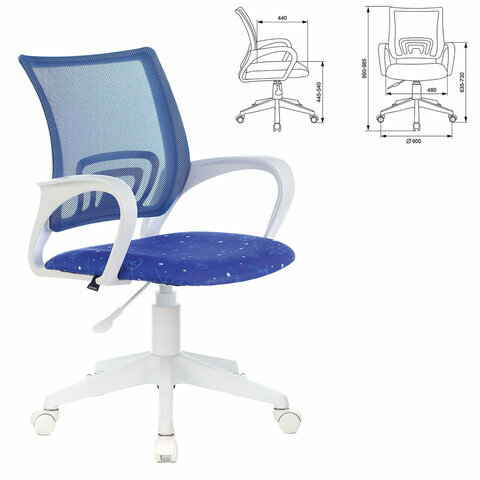 Кресло BRABIX "Fly MG-396W", с подлокотниками, пластик белый, сетка, темно-синее с рисунком "Space", 532405, MG-396W_532405 информация: