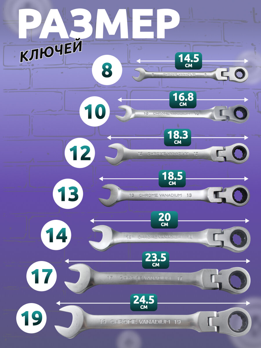 Набор ключей с трещоткой, набор комбинированных ключей с трещеткой и шарниром 7 предметов информация: