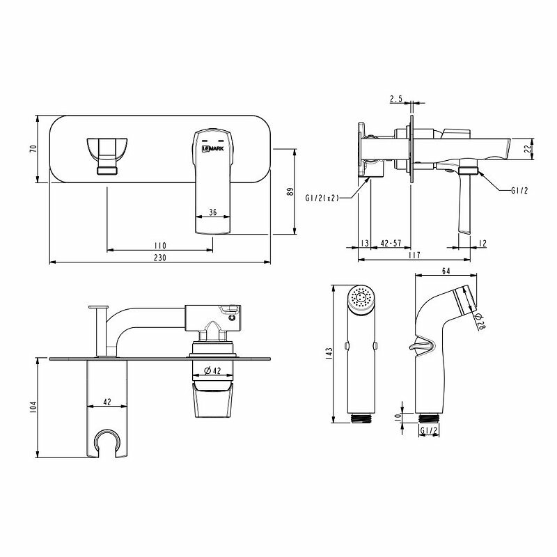 Гигиенический душ со смесителем Lemark Ursus LM7220BL Черный информация: