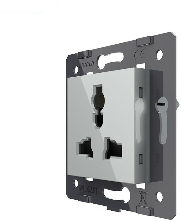 VL-FCT22 16A-2IP Розетка электрическая универсальная с заземлением защитными шторками 16A Livolo, цвет серый (механизм) информация: