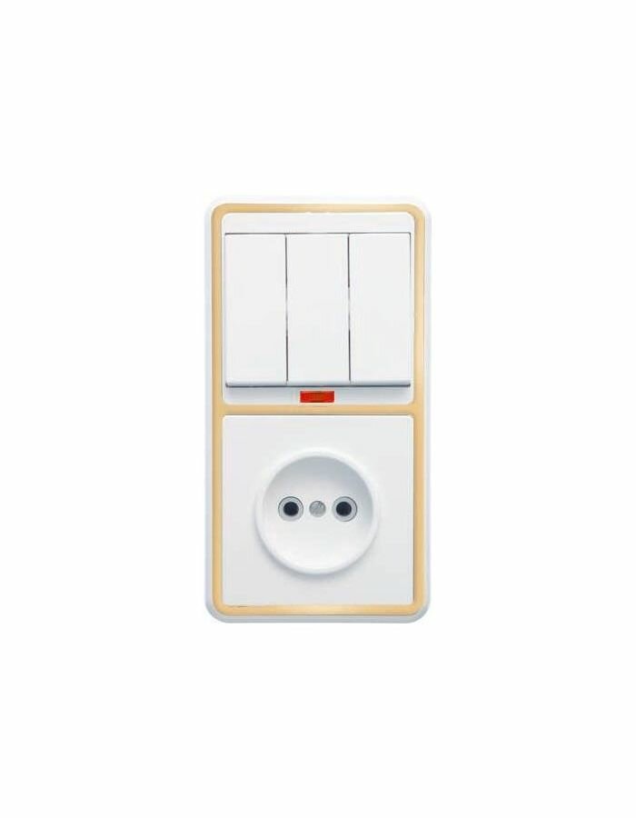 Блок БКВР-212 Бэлла (3-кл. выкл. с инд. + розетка) зол. Кунцево 5842 ( 1шт. ) информация: