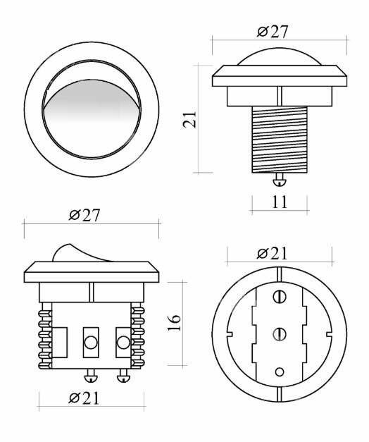 Выключатель врезной кнопочный, белый, D-27мм, 5А информация: