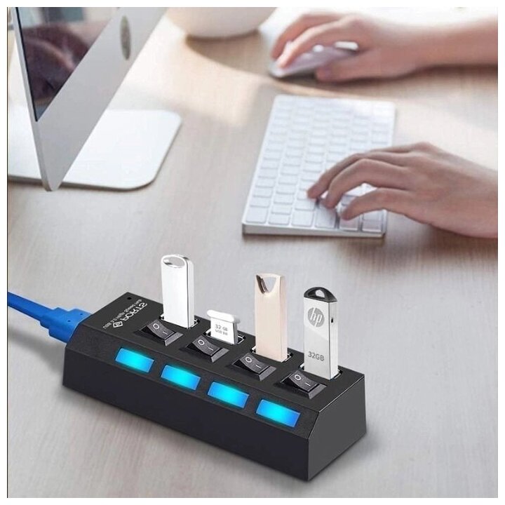 10 цен на USB Hub разветвитель на 4 USB с выключателями (Черный)