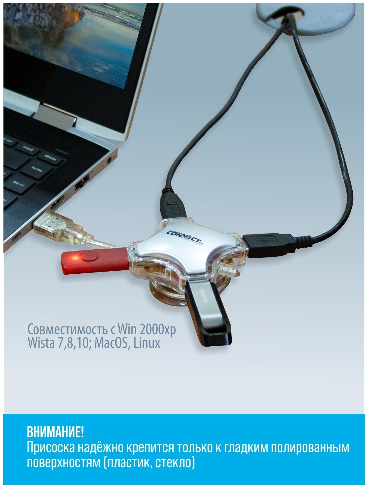 Разветвитель концентратор USB хаб (HUB), 4 порта USB 2.0, серебристый информация: