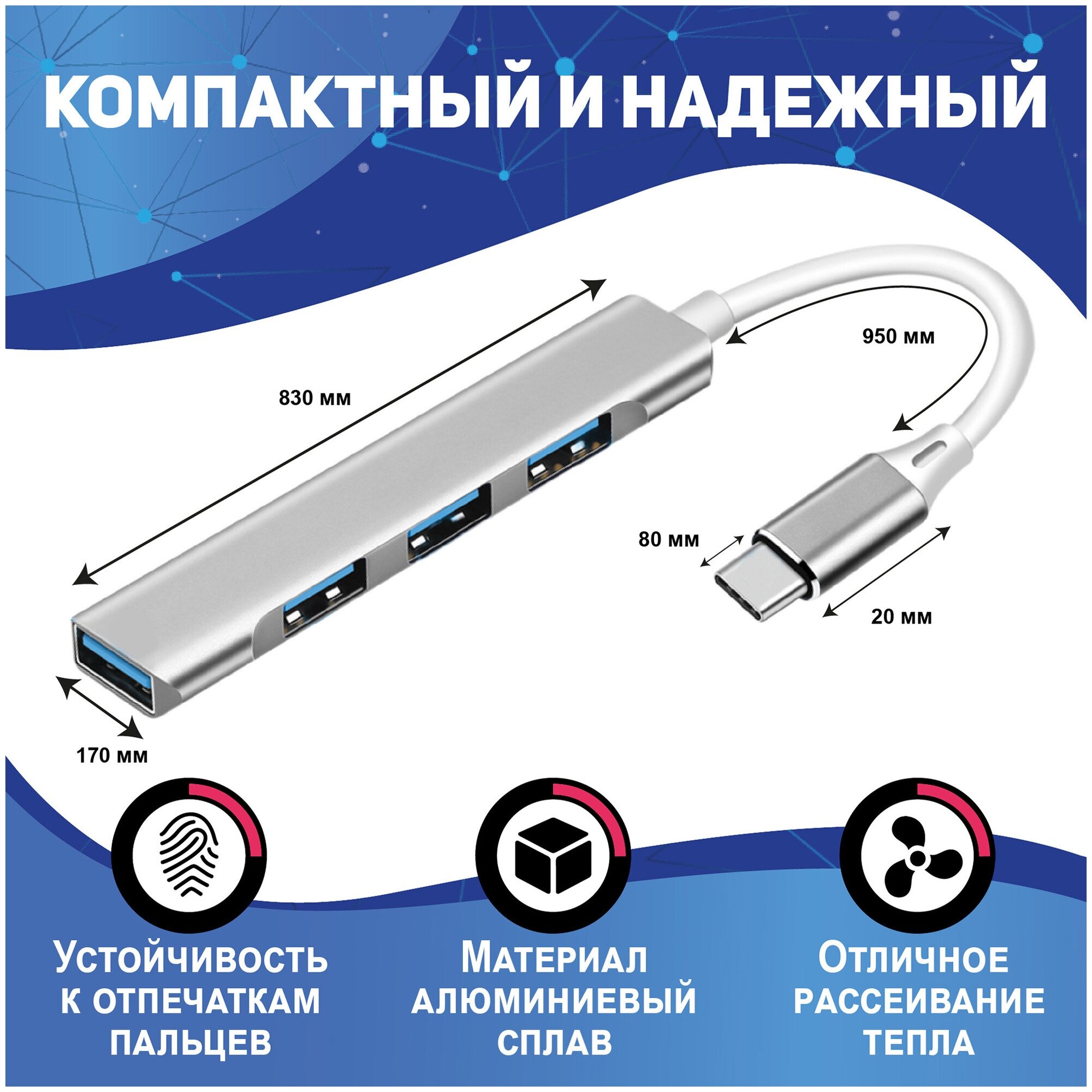 USB Type-C концентратор 3.0 на 4 порта / HUB разветвитель / Хаб на 4 USB (0,1 м) / серебристый информация: