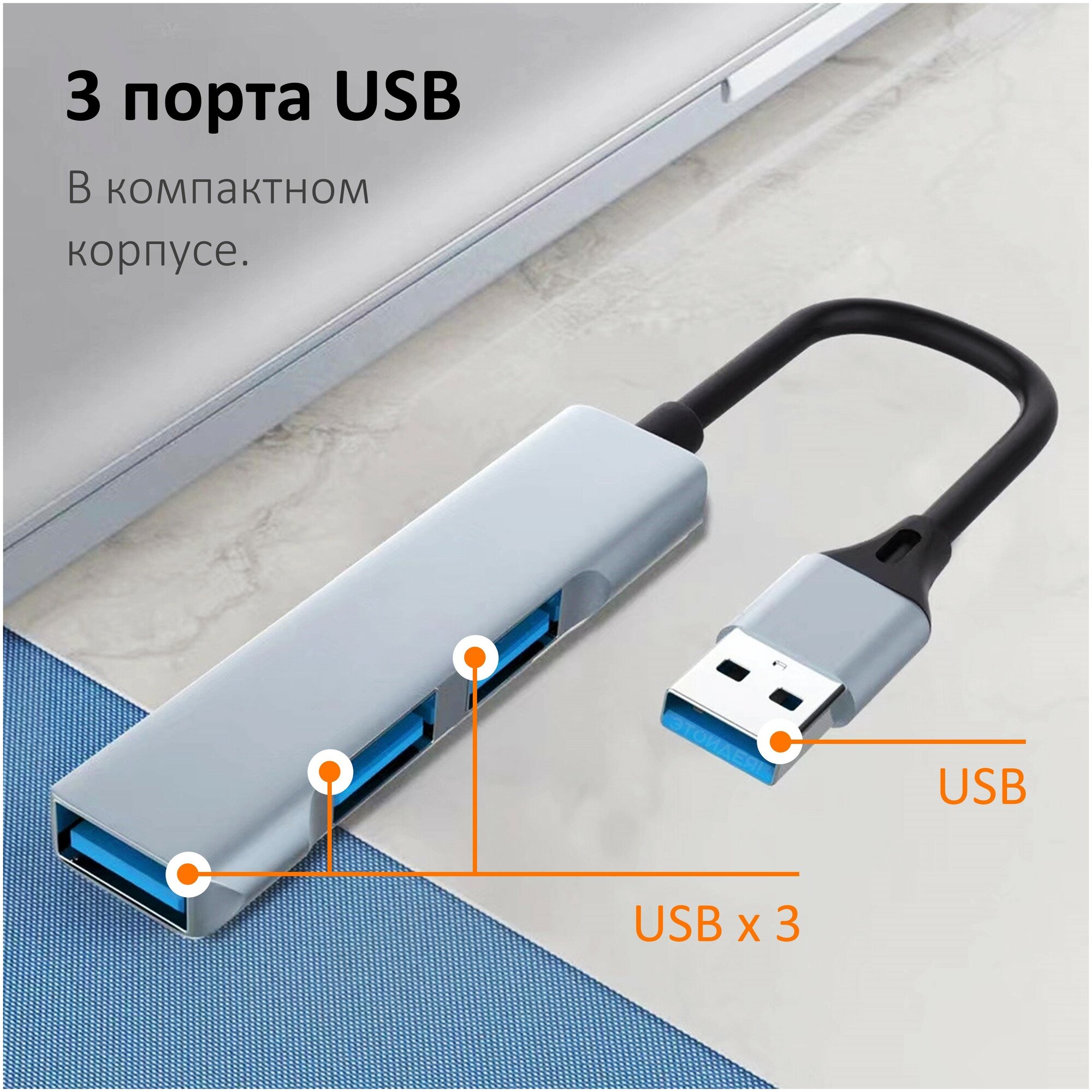 Хаб USB 3.0 на 3 порта, серебристый / компактный USB переходник информация: