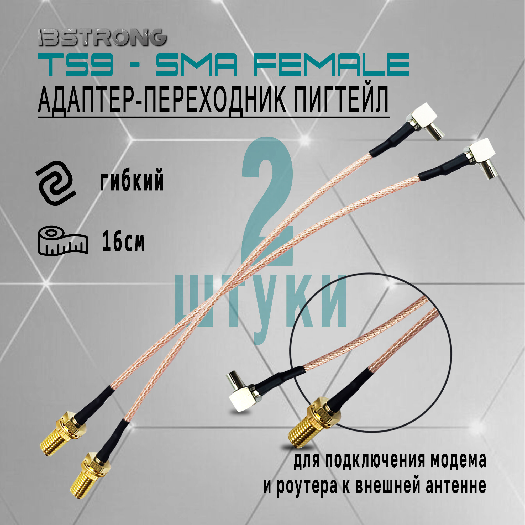 Комплект адаптер-переходник Пигтейл TS9-SMA(female) (2 шт.), 15 см для подключения модема, роутера к внешней антенне информация: