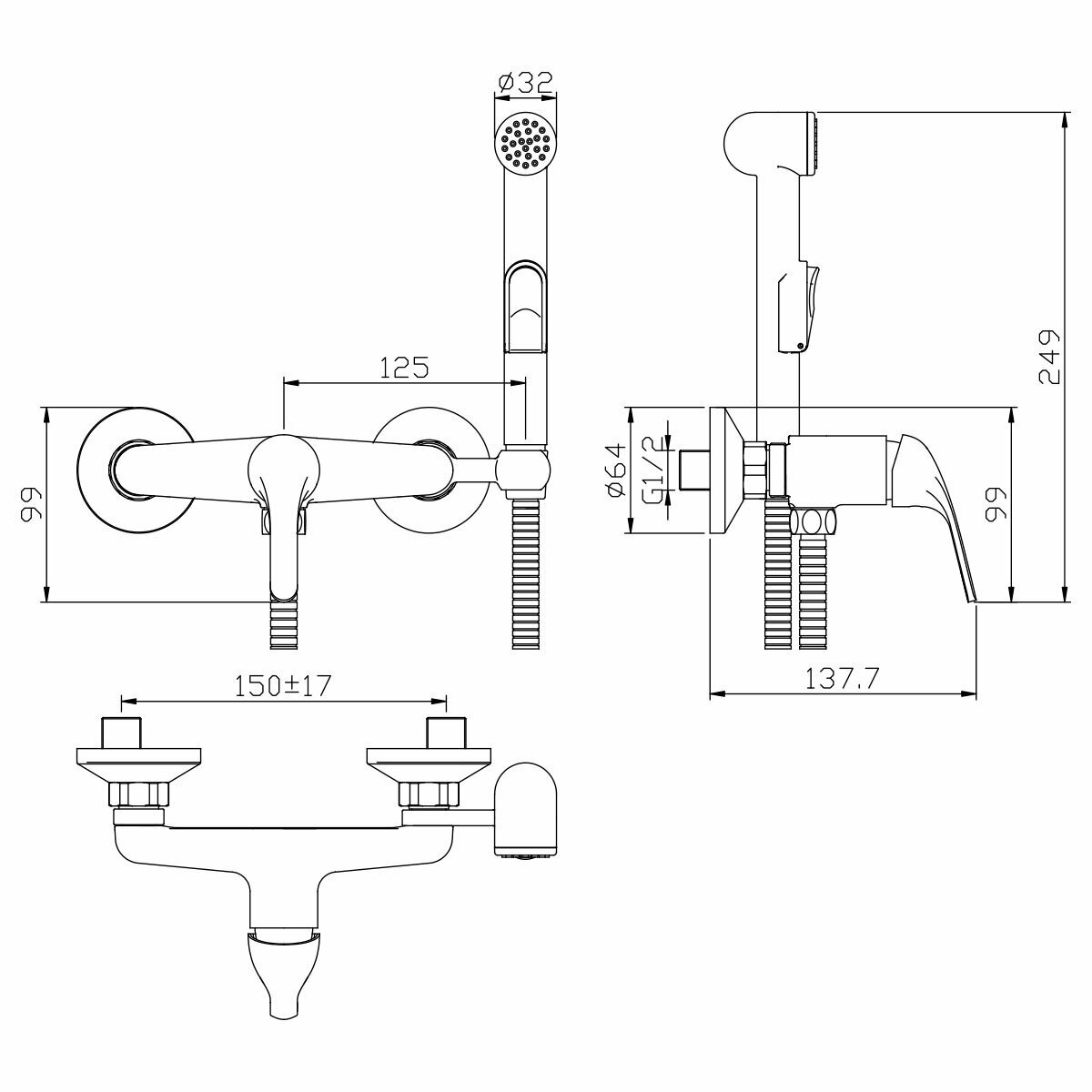 Смеситель для душа Rossinka Silvermix с гигиенической лейкой, хром (Y25-52) 4 275 ₽