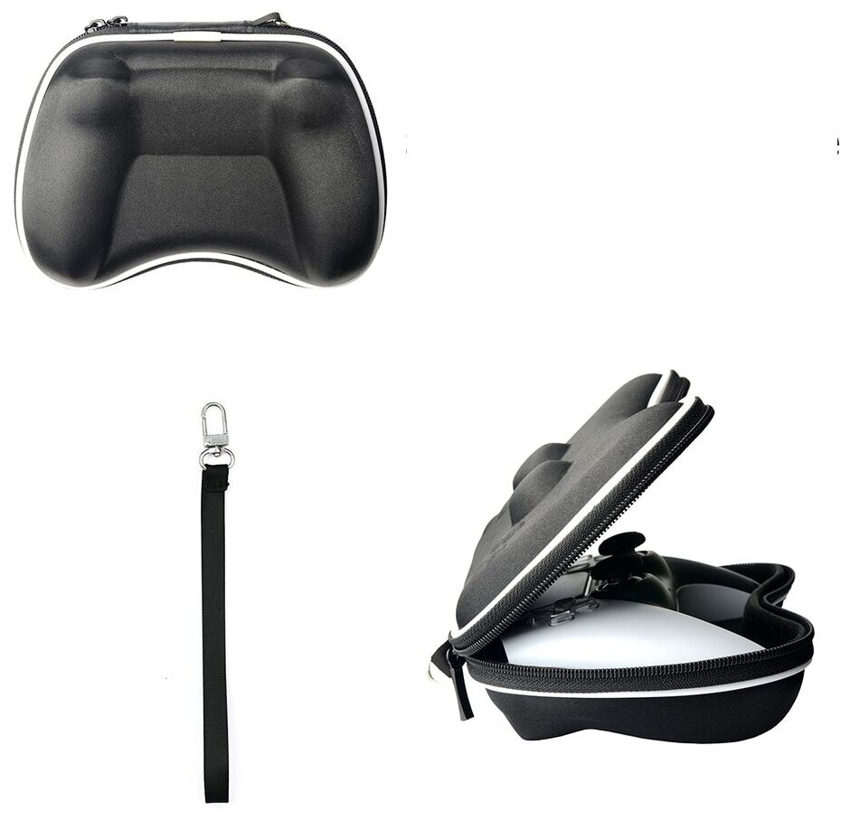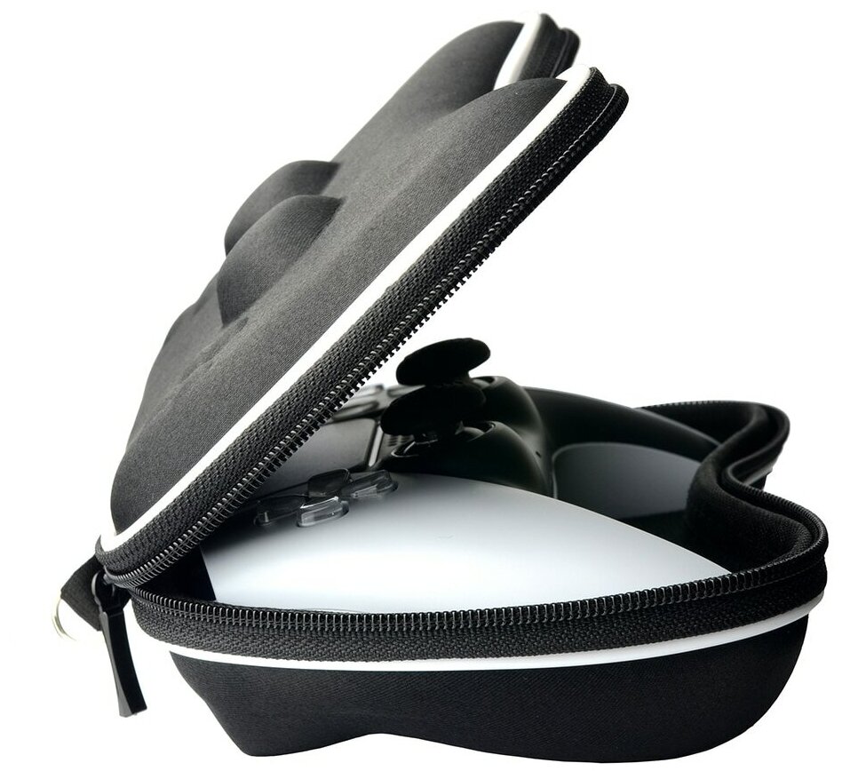 Чехол-сумка для геймпада PlayStation 5/ кейс для джойстика Sony DualSense PS 5 (цвет черный с белой вставкой) информация: