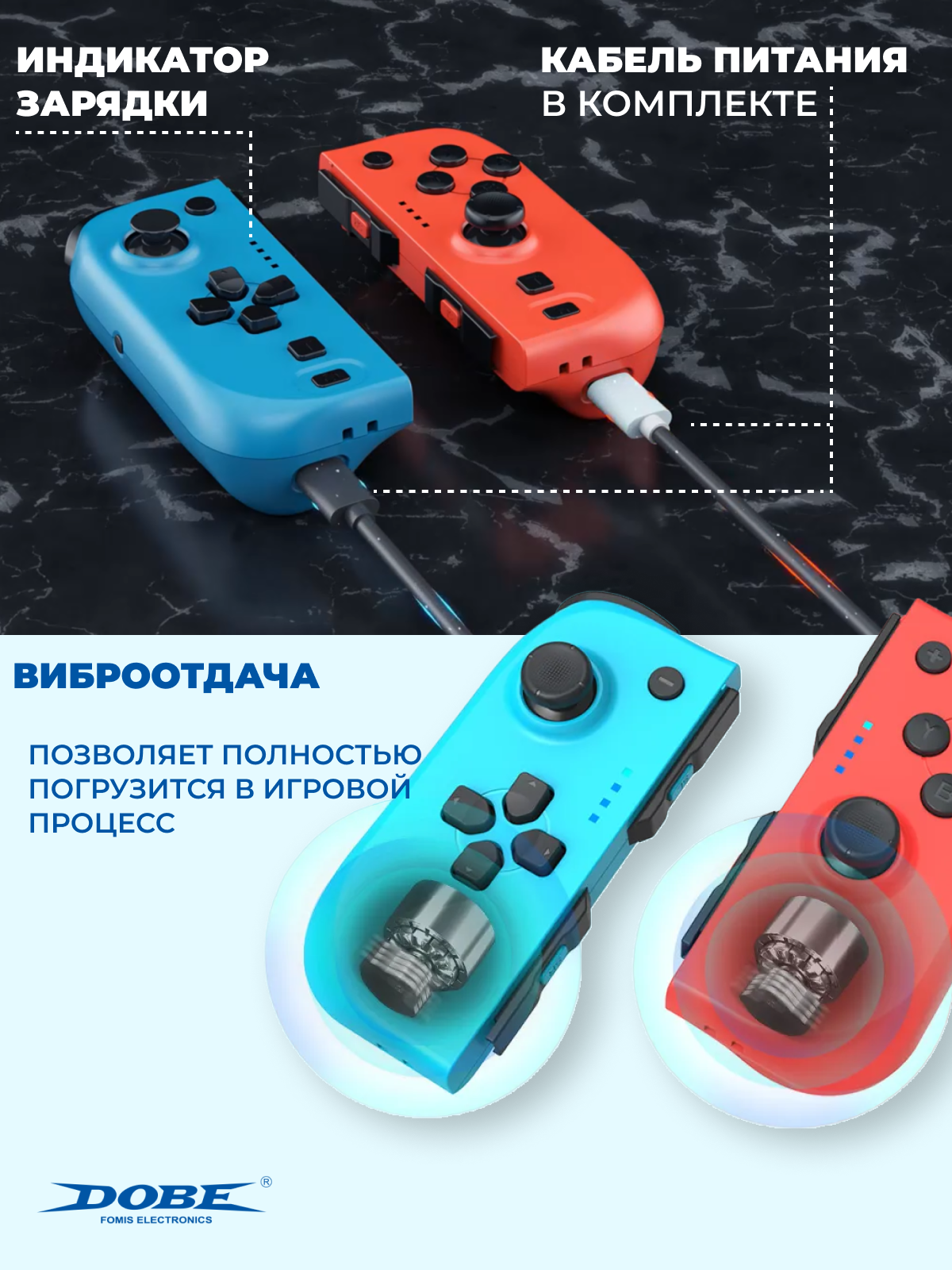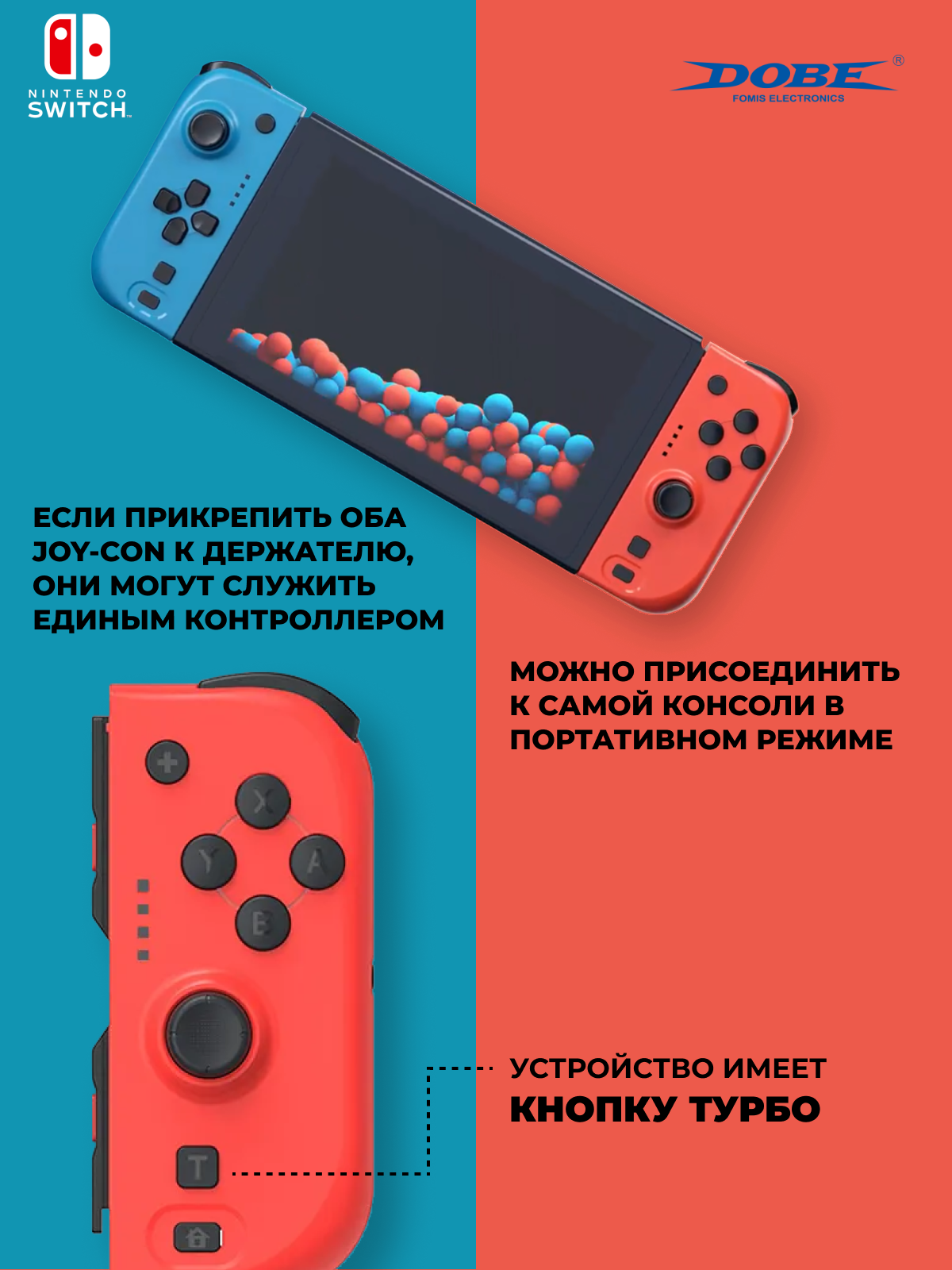 Беспроводной игровой джойстик контроллер DOBE для консоли Nintendo Switch Joy-Con с функцией NFC, левый и правый информация: