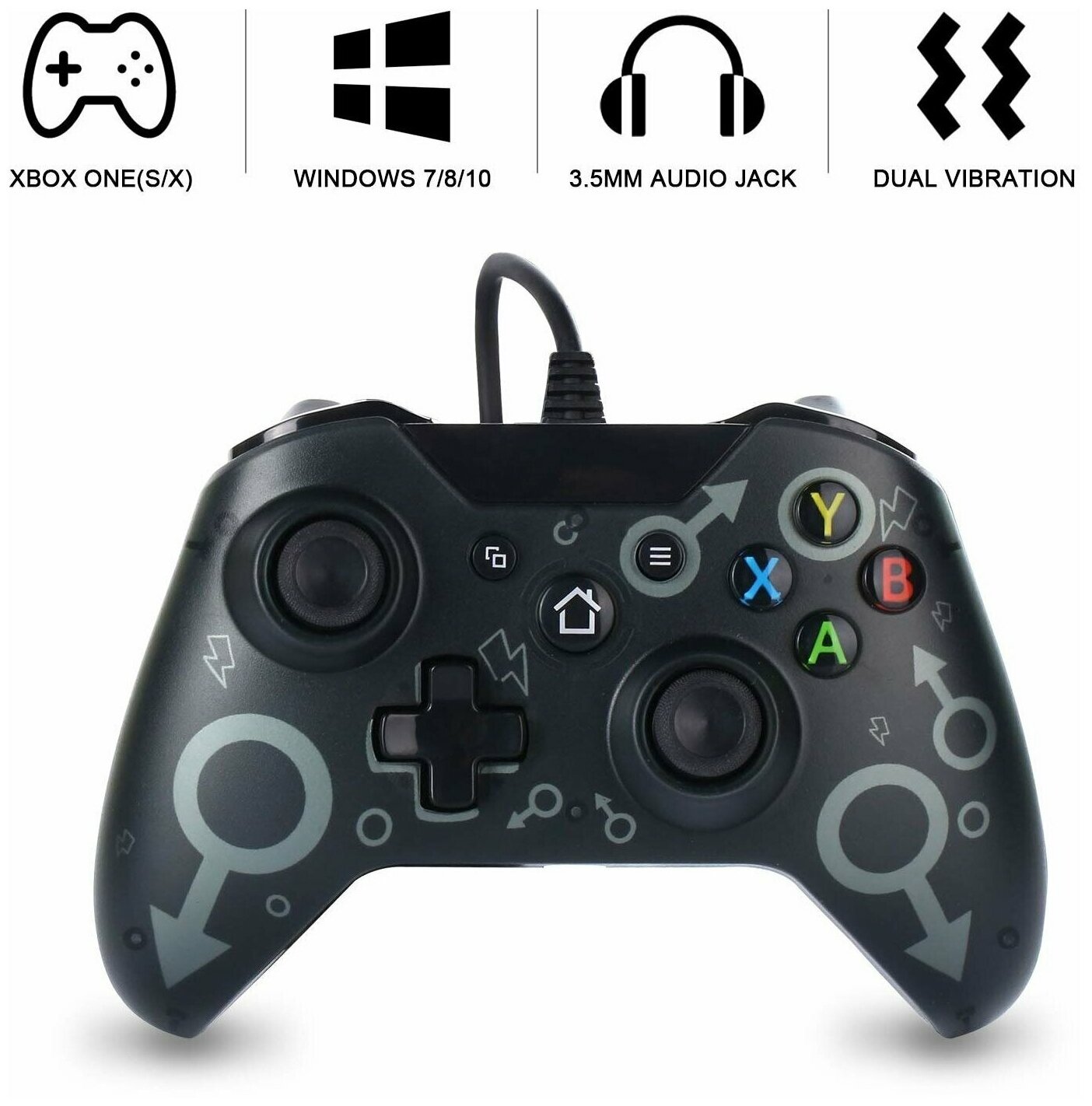 Геймпад проводной для XBOX One/S/X матово-черный с символом Марса информация: