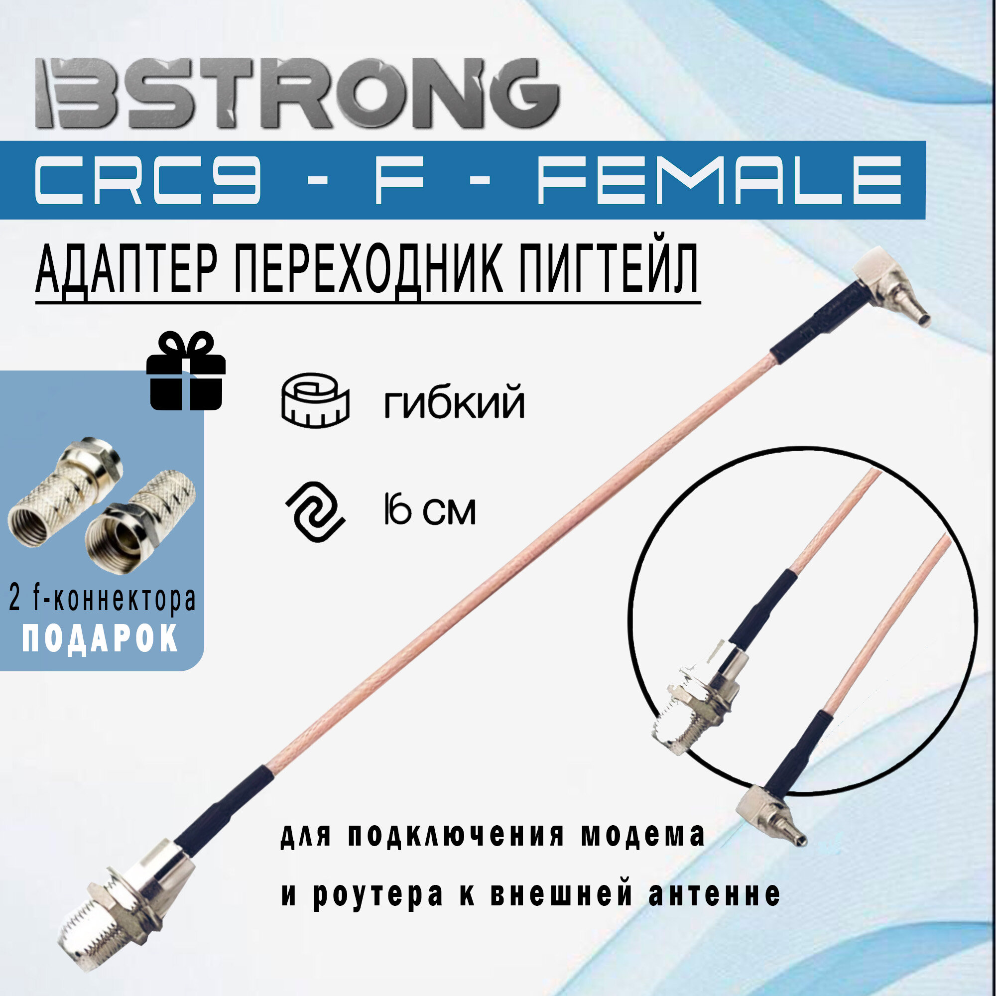 10 цен на Адаптер-переходник Пигтейл CRC9-F-female 15 см + 2 f-разъема для подключения модема, роутера к внешней антенне