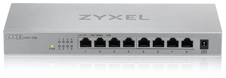 Коммутатор ZYXEL MG-108 multi-gigabit switch, 8x1 / 2.5GE, desktop, silent информация: