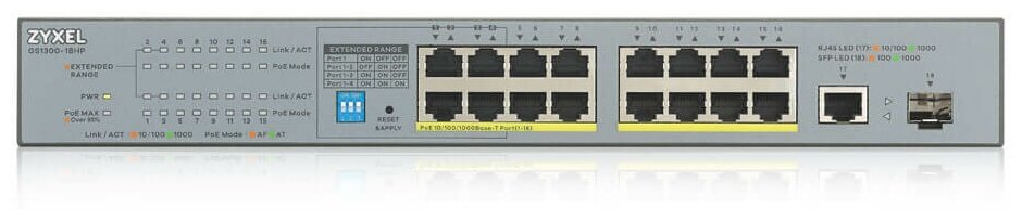 Коммутатор ZyXEL 1300 GS1300-18HP GS1300-18HP-EU0101F/PoE 170Вт./Неуправляемый Layer 2