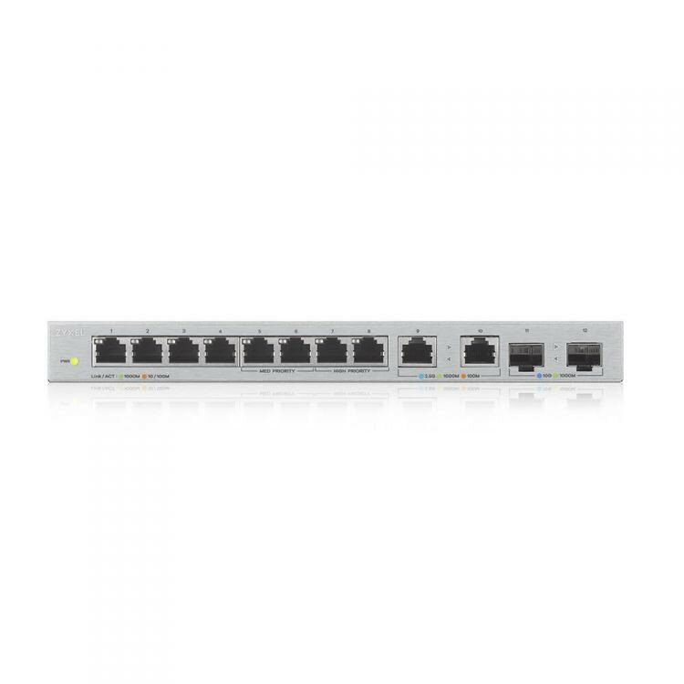 ZYXEL XGS1010-12-ZZ0101F Коммутатор 2x1 2,5GE, 2xSFP+, настольный, бесшумный информация: