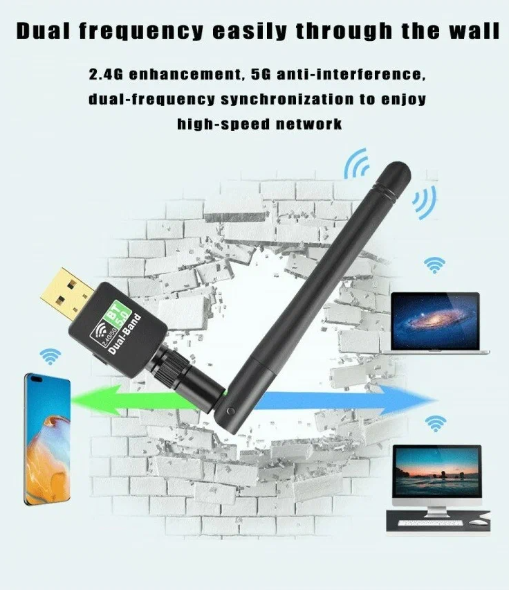 Отзывы на Двухчастотный сетевой адаптер Bluetooth 5.0 и Wi-Fi usb приемник 2 в 1
