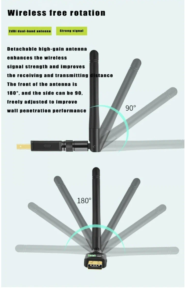 Двухчастотный сетевой адаптер Bluetooth 5.0 и Wi-Fi usb приемник 2 в 1 информация: