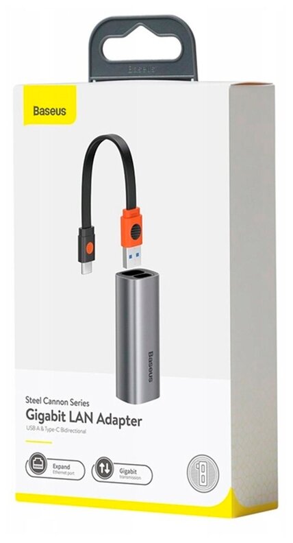 Отзывы на Гигабитный сетевой LAN адаптер BASEUS Steel Cannon Series, двунаправленный, USB A/Type-C to Ethernet port, Серый, CAHUB-AF0G