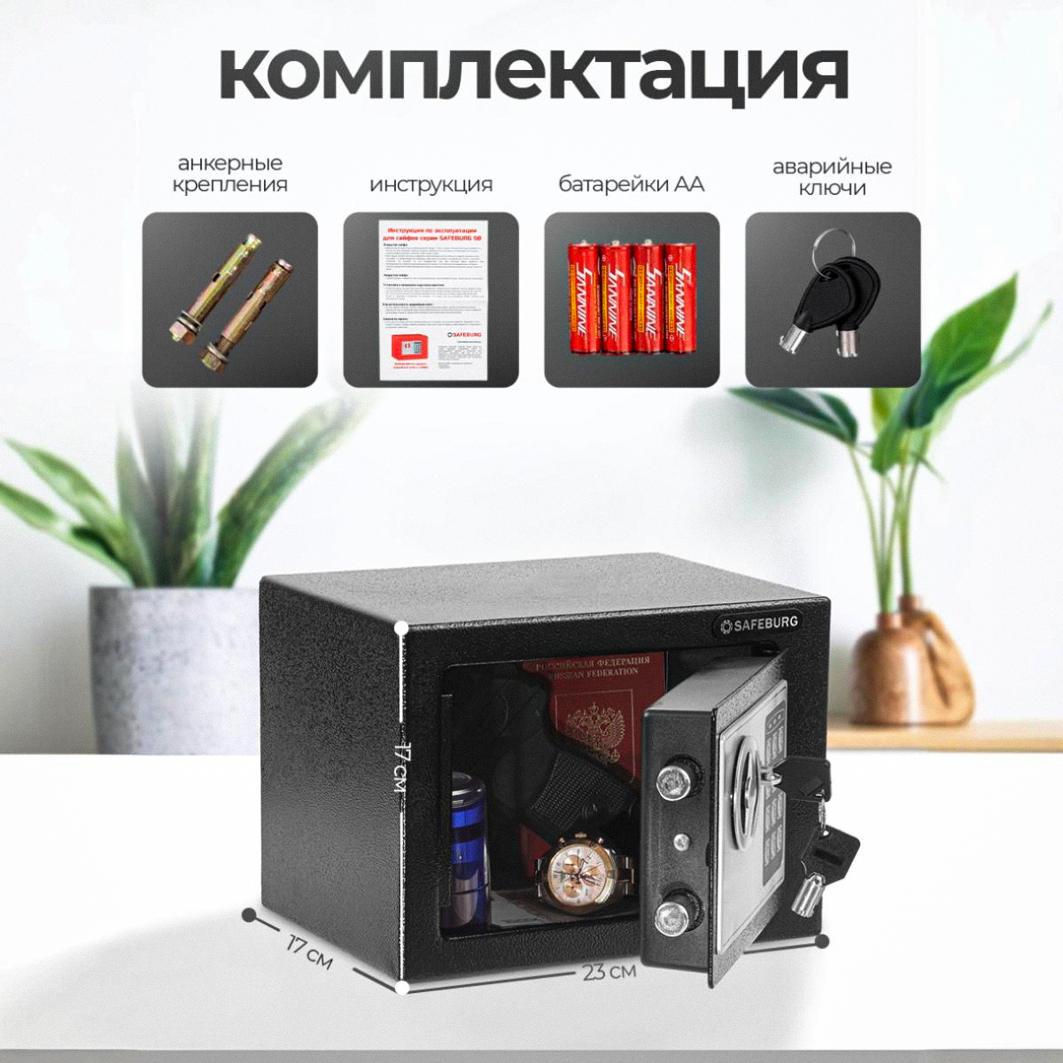 Сейф для денег и документов SAFEBURG SB-170 BLACK с электронным кодовым замком, для дома/квартиры/офиса, 17х23х17 см информация: