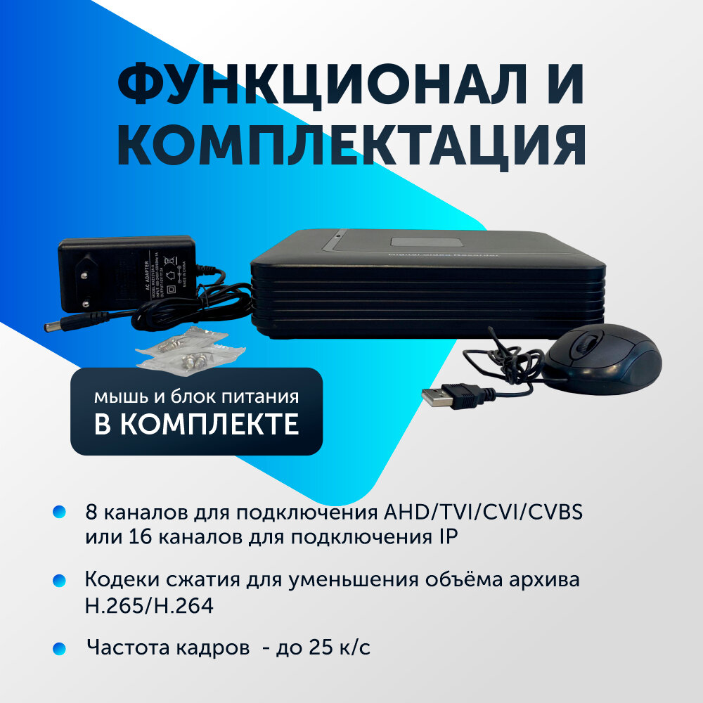 Видеорегистратор гибридный 8 каналов AHD 5 Mpix + IP 2 Mpix регистратор видеонаблюдения p2p xmeye информация: