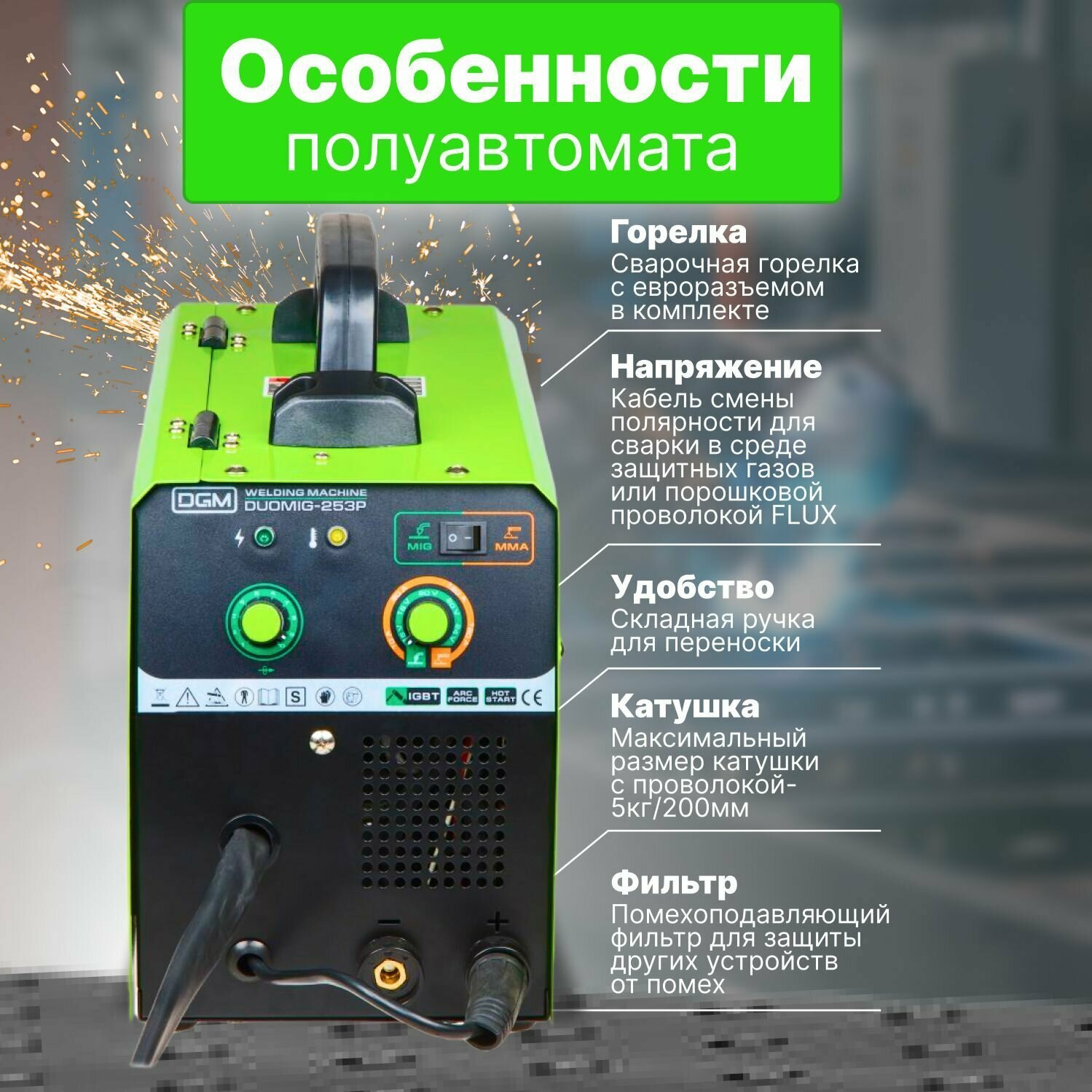 Полуавтомат сварочный DGM DUOMIG-253P (220В, MIG/FLUX/MMA, промразъем, смена полярности)