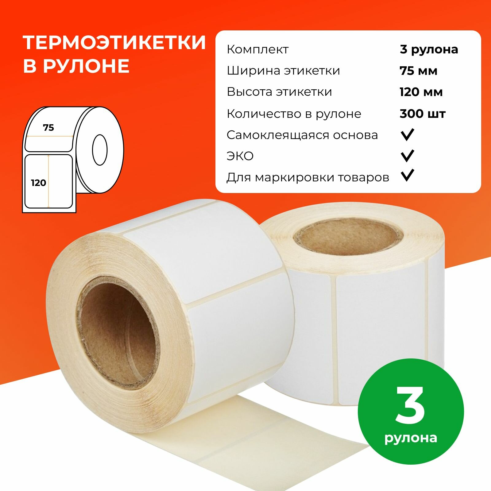 Терморинтер для этикеток Rongta RP310 + Термоэтикетки в рулоне 75 х 120 мм, 3 х 300 шт, комплект информация: