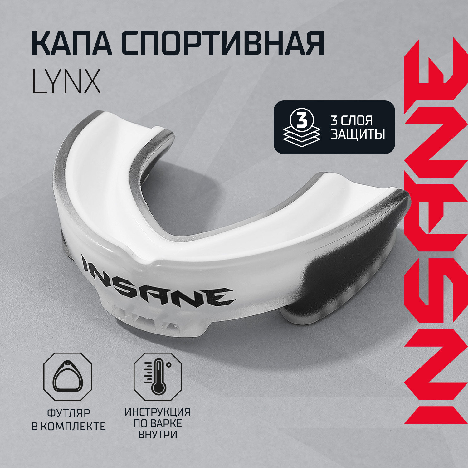 Капа 1-челюстная взрослая INSANE LYNX IN23-MG500, ЭВА, белый/черный информация:
