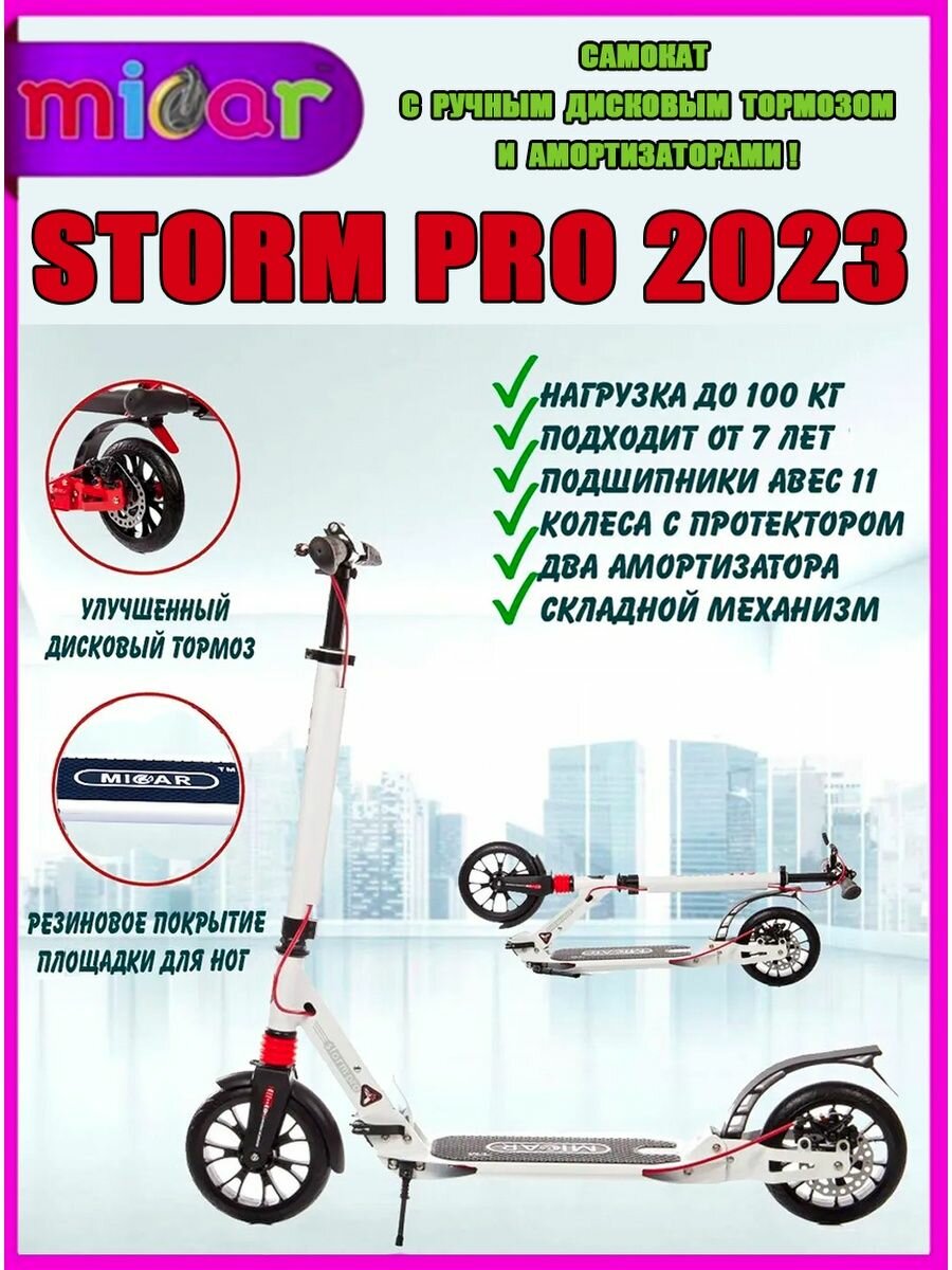 Городской самокат Micar Storm Pro 2023 с ручным дисковым тормозом и амортизаторами Белый информация: