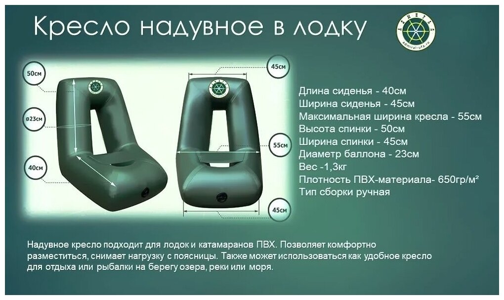 Отзывы на Кресло надувное для лодки из ПВХ, вес 1300гр, размер 55 х 50х 45см. Цвет Олива(зеленый)