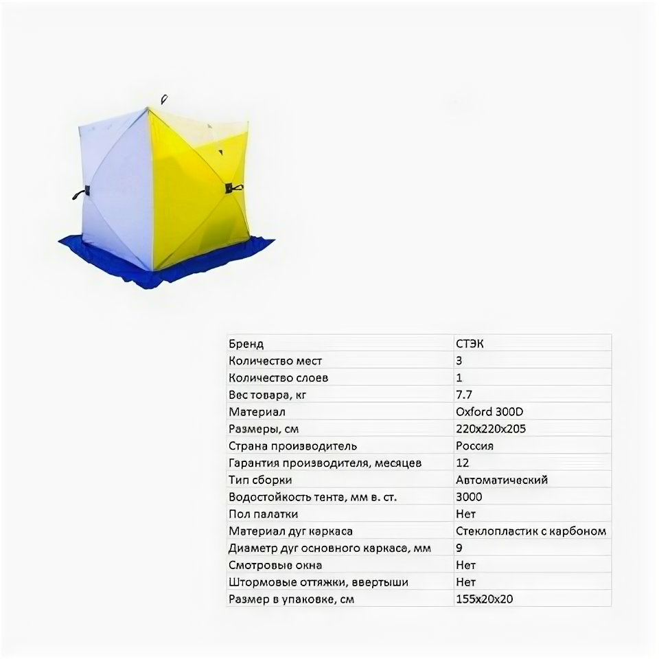 Палатка для зимней рыбалки стэк Куб 3 (однослойная) информация: