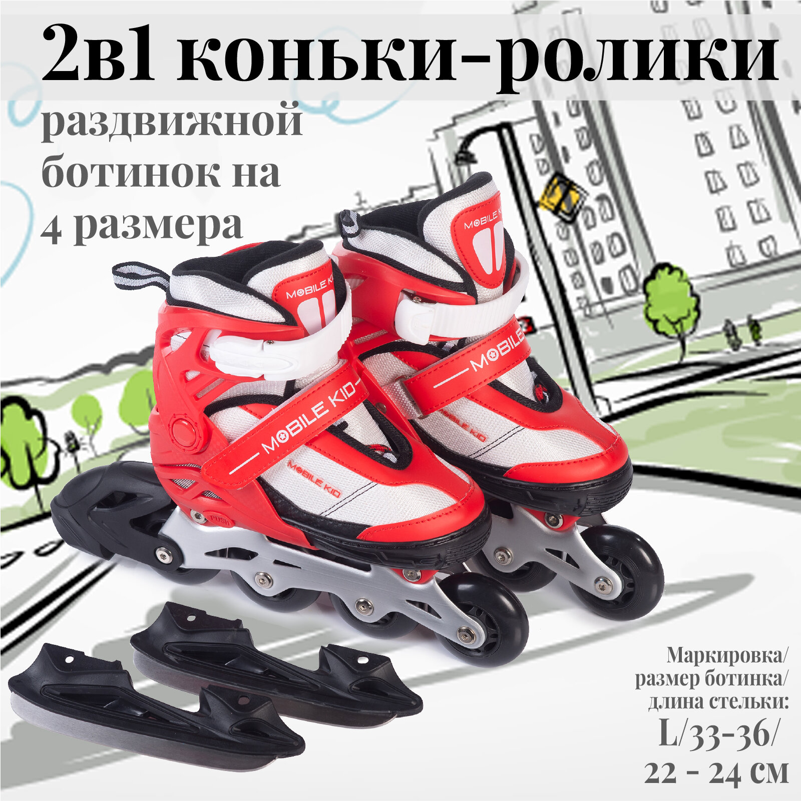 10 цен на Раздвижные коньки-ролики Mobile Kid Uni Skate (2 в 1), размер L (RED WHITE)
