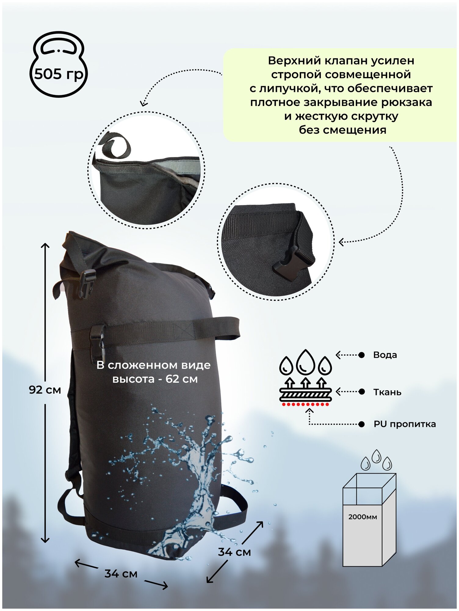 Рюкзак туристический НИКА Гром PRO 100 л, вещмешок походный для охоты, рыбалки, туризма, черный информация: