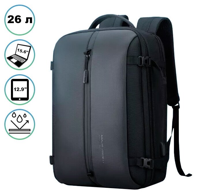 Рюкзак-сумка трансформер мужской городской дорожный вместительный 26л для ноутбука 15.6 Mark Ryden MR1930 Черный с USB для взрослых и подростков информация: