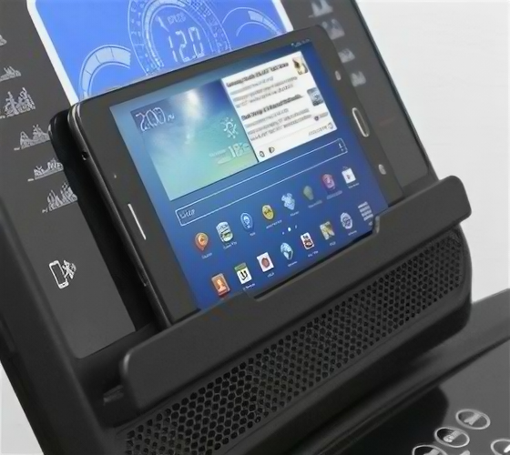 | Особенности | пиковая мощность двигателя 4.4 л.с.; беговое полотно - 1.8 мм. двухслойное Habasit NVT-218; возможность подключения беспроводного кардиодатчика; встроенный кардиодатчик; подставка для книг, подставка под планшет, подставка для стакана; воспроизведение аудио файлов, интеграция AUX IN, USB; встроенные динамики (3 Ватт); 7 дюймовый (17,5 см) голубой многофункциональный LCD дисплей; язык интерфейса английский; спецификации программ: ручной режим, 12 встроенных программ (быстрая ходьба, легкий бег, аэробная тренировка, темповая тренировка, пересеченная местность, интервальный бег, холмы, гора, сжигание жира, фартлек, выносливость,снижение веса), 3 целевых (дистанция, калории, время), 3 пользовательских и 3 пульсозависимых режима; размер в сложенном виде (ДхШхВ) 113х75х142 см |