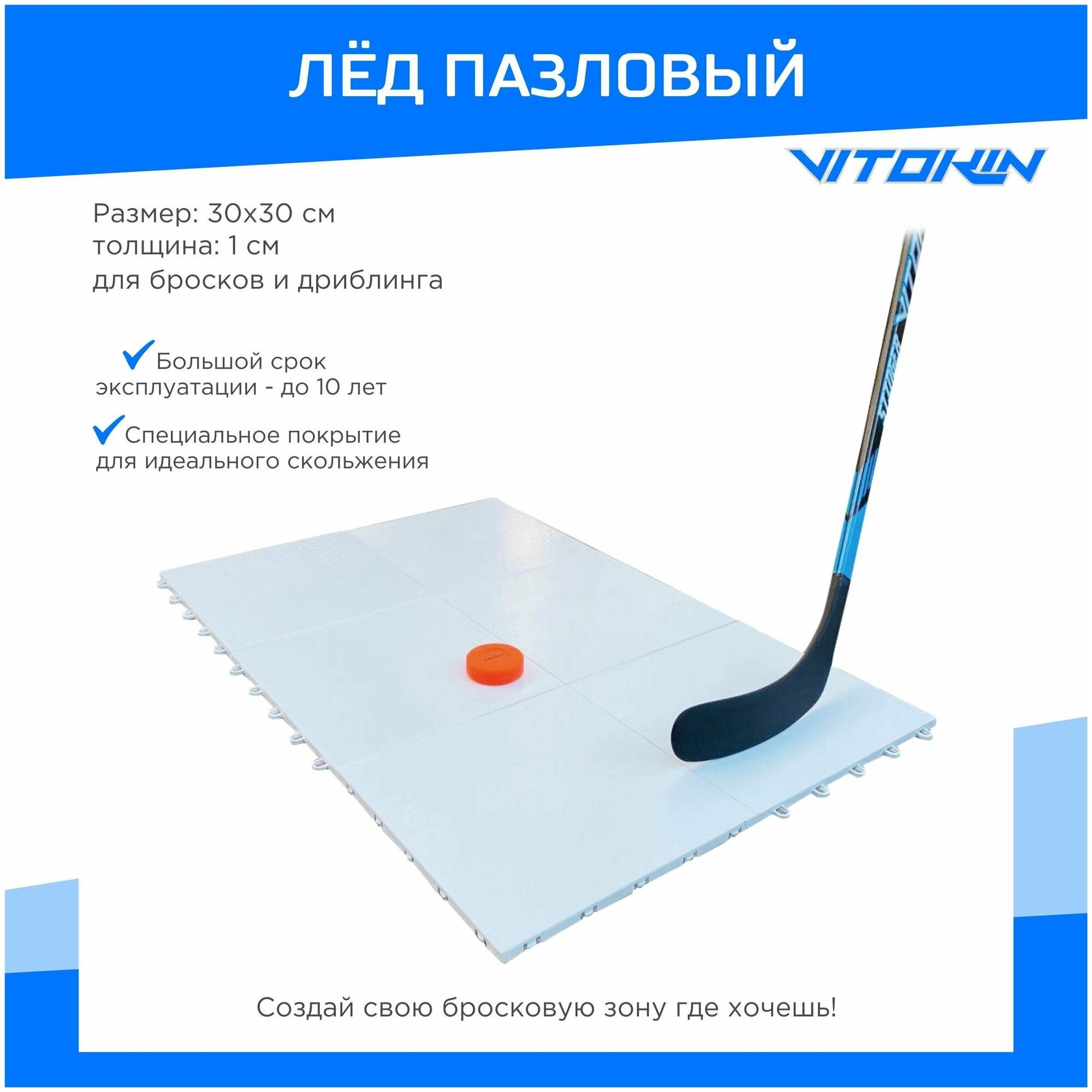 Хоккейный тренажер лед пазловый для бросков и дриблинга 30х30 см. VITOKIN информация: