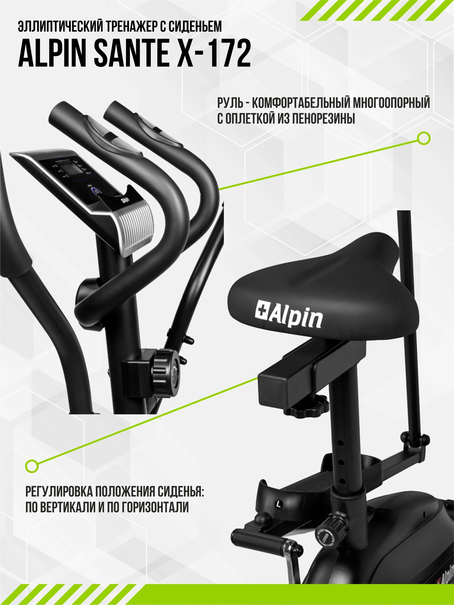 Эллиптический тренажер ALPIN SANTE X-172 с сиденьем фитнес домашний для спорта, тренировок, всего тела, кардио информация: