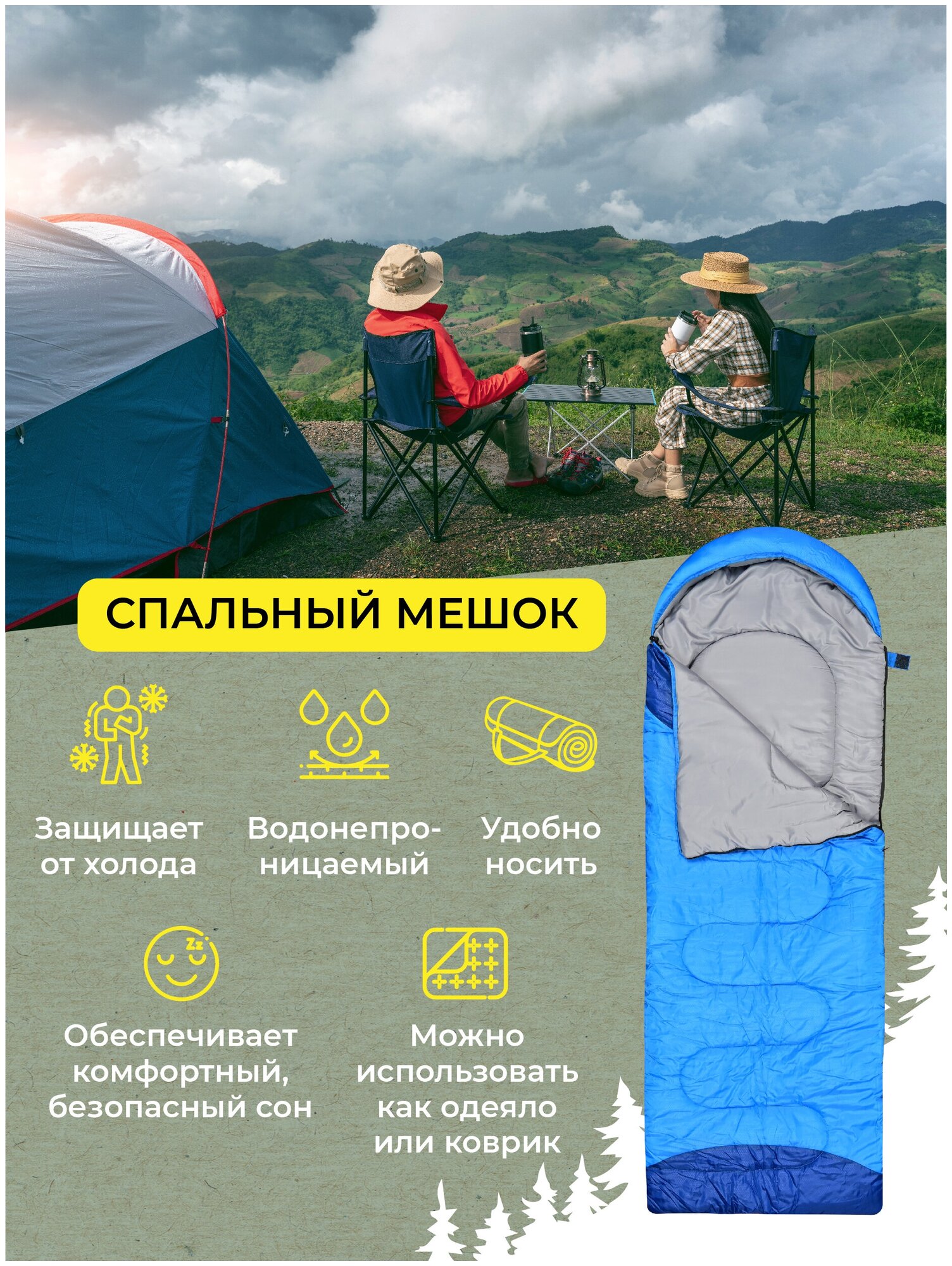 10 цен на Водонепроницаемый спальный мешок демисезонный BMDFB002 210х85 см с подголовником синий / Одинарный спальник туристический