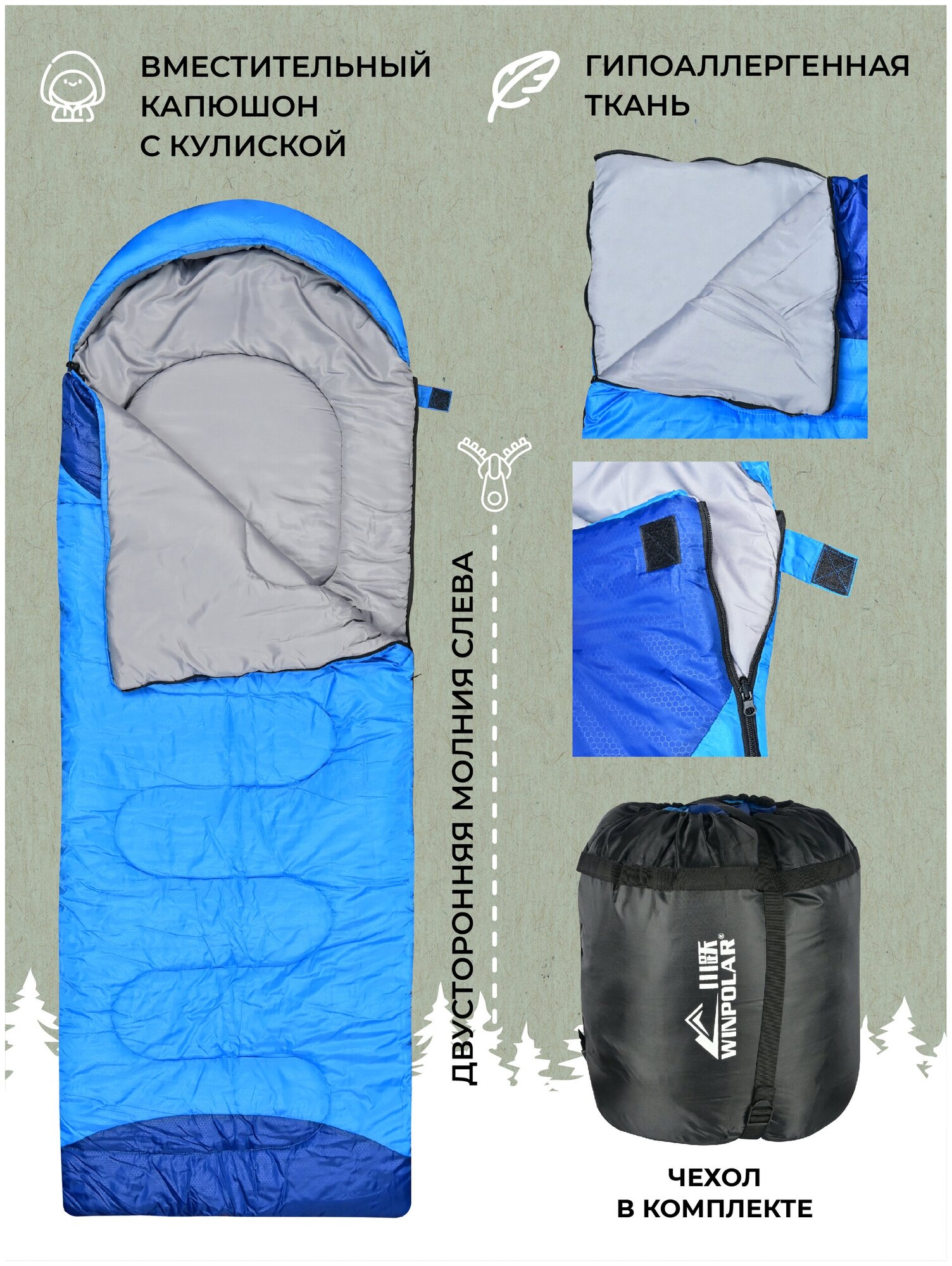 Водонепроницаемый спальный мешок демисезонный BMDFB002 210х85 см с подголовником синий / Одинарный спальник туристический информация: