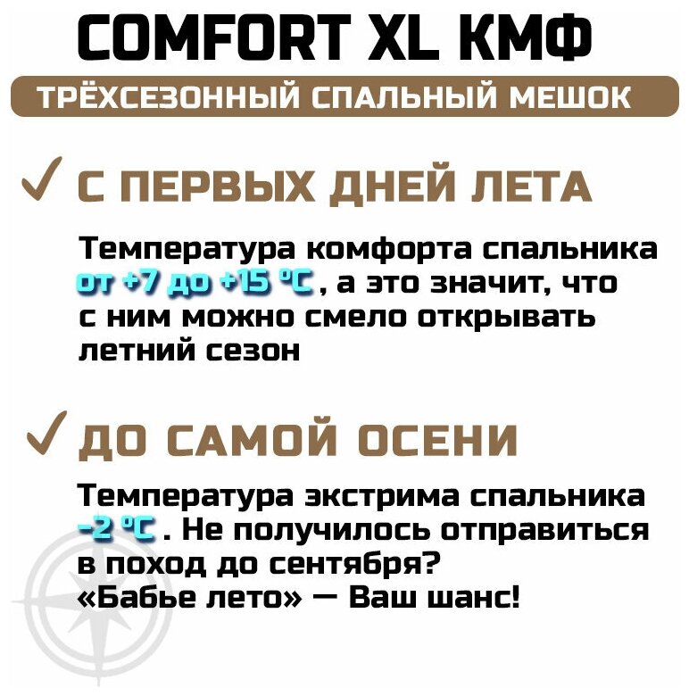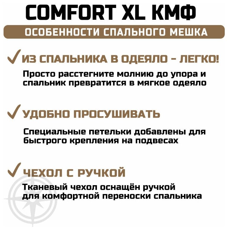 Спальный мешок одеяло Prival Camp Comfort XL КМФ К-2, t extr -2 °С, 215х90 см информация: