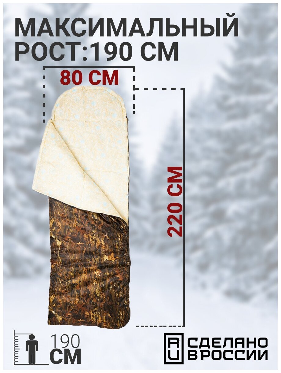 Спальный мешок армейский туристический зимний KATRAN Арктика до -30С Коричневый КМФ информация: