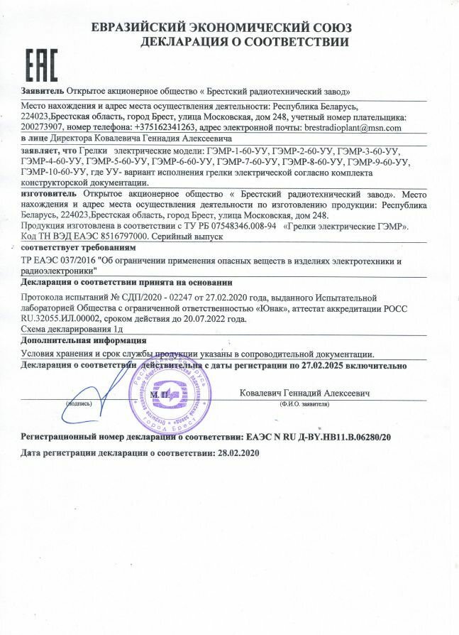 Грелка электрическая ГЭМР-8-60-01 (электроматрас 1500х700) Брест информация: