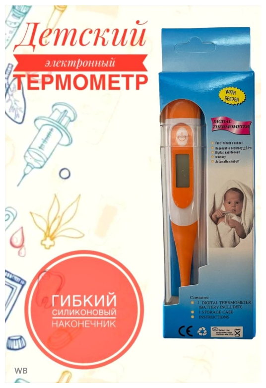 10 цен на Термометр (градусник) детский электронный.(оранжевый с белым)