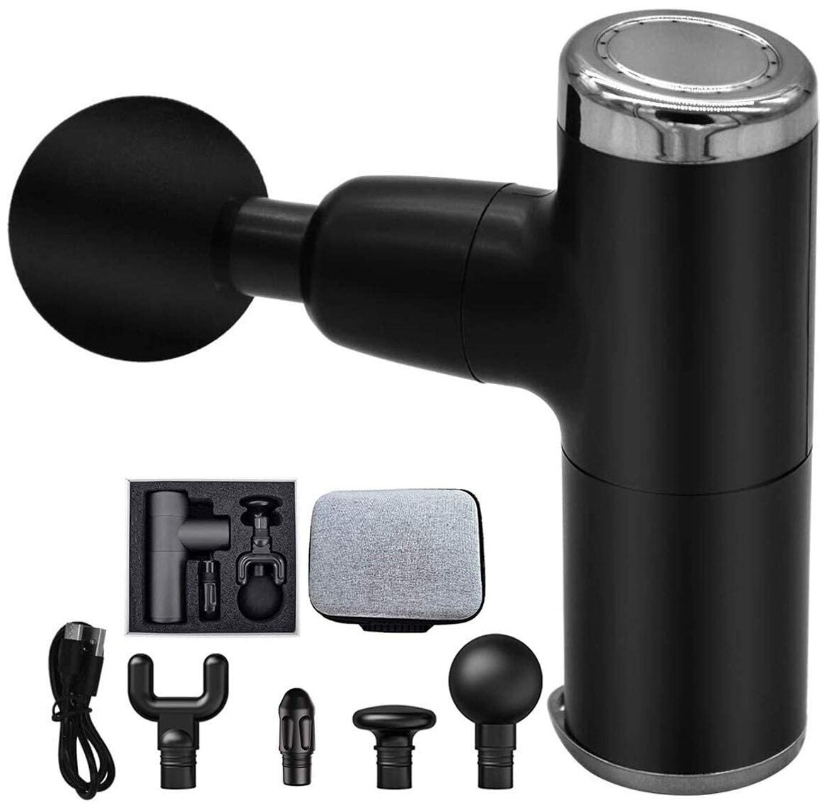 Перкуссионный массажер для мышц тела / Портативный электромассажер / Ударный массажный пистолет с насадками в комплекте информация:
