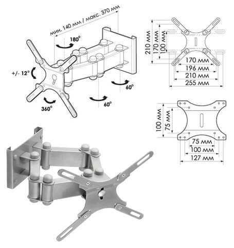 Отзывы на Кронштейн для телевизора на стену наклонно-поворотный с диагональю 15"-32" Trone ЖК-130,серебро