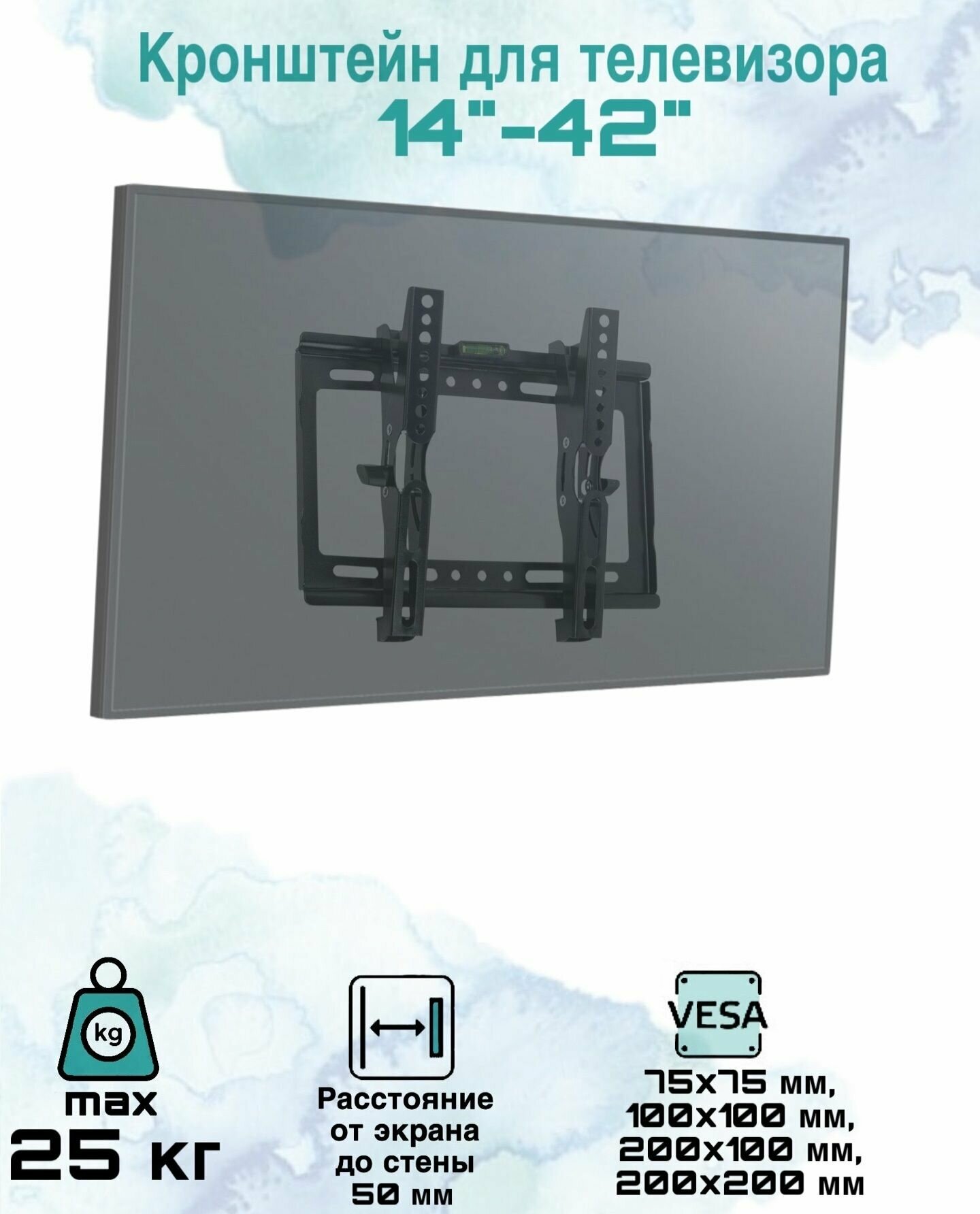 Кронштейн для телевизора настенный для телевизоров/мониторов от 14" до 42" с грузоподъёмностью до 25 кг информация: