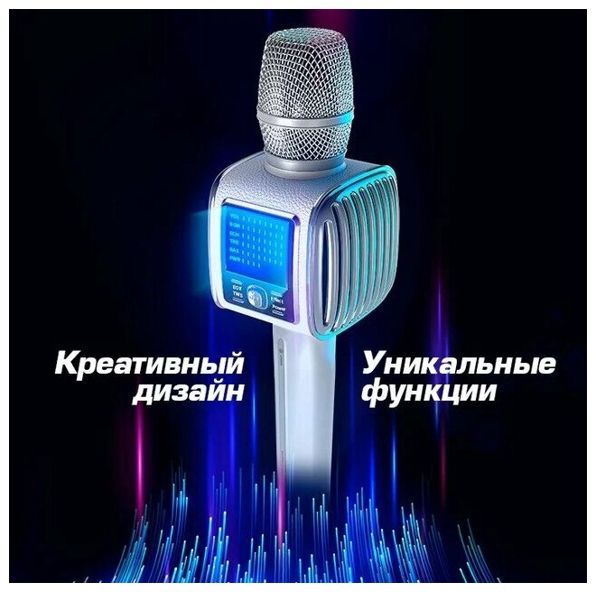 Беспроводной караоке микрофон с колонками TOSING G6+, динамический, вокальный, беспроводной, Bluetooth, LED подсветка информация: