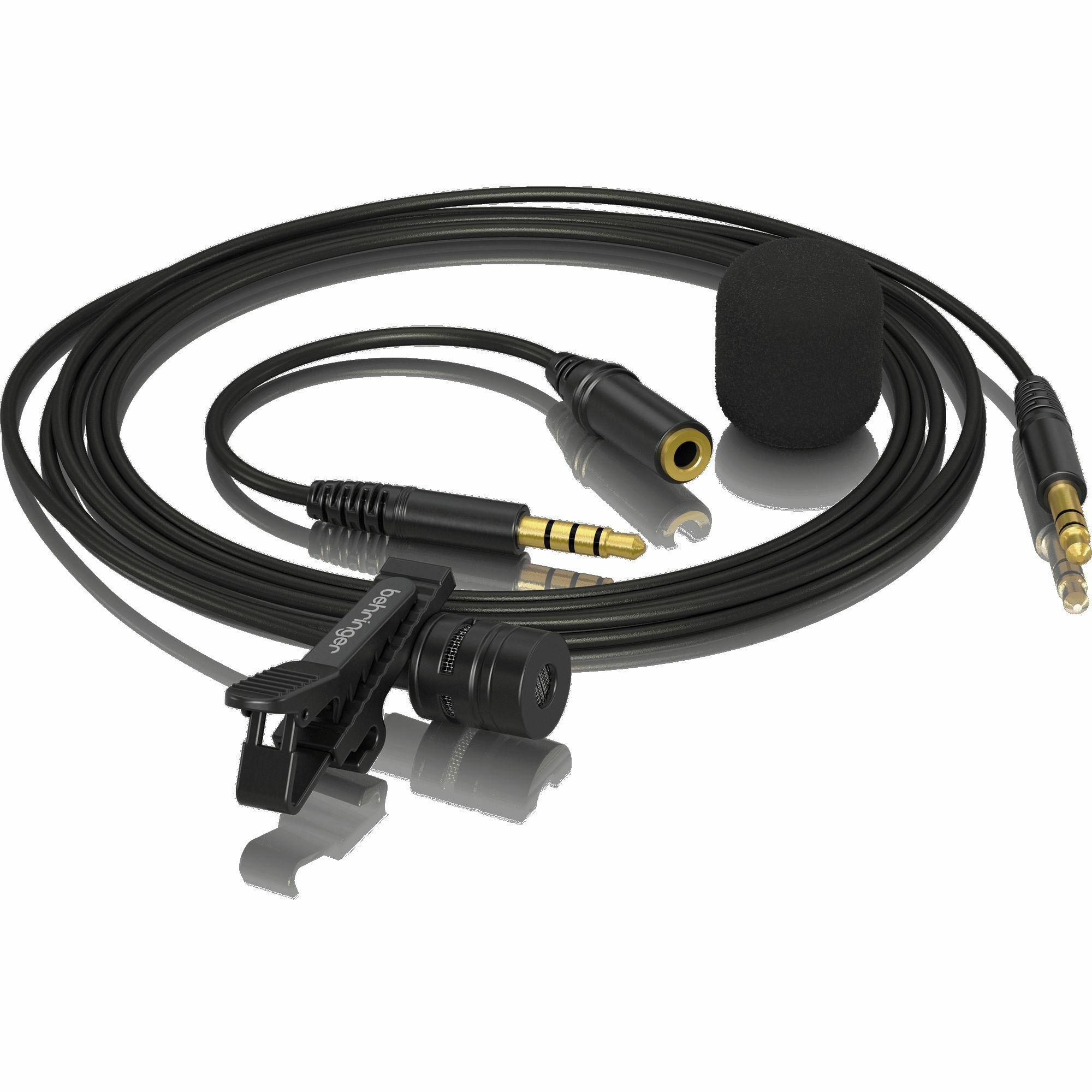 Behringer BC LAV GO конденсаторный петличный микрофон, разъем 3.5 mm TRS, переходник на 3.5 mm TRRS, с ветрозащитой и клипсой, кабель 1,2 м, черный