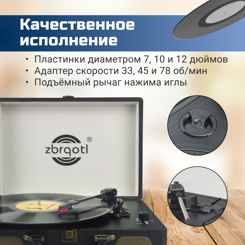 Проигрыватель виниловых пластинок Zdk Zbrqotl винтажный KD-3050BL со встроенными колонками с разъемом для наушников информация: