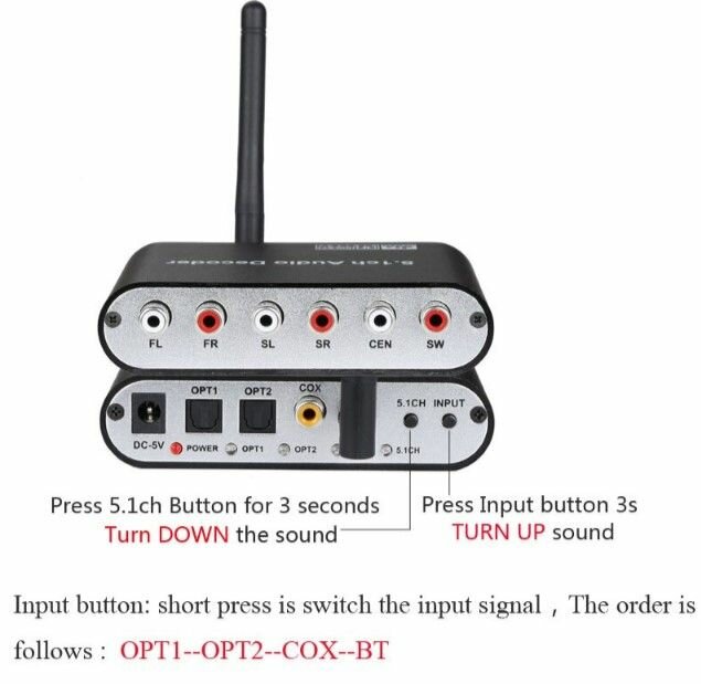 Отзывы на Decoder 5.1, coaxial, bluetooth, декодер 5,1 - 192 кГц + кабель Toslink 1 метр