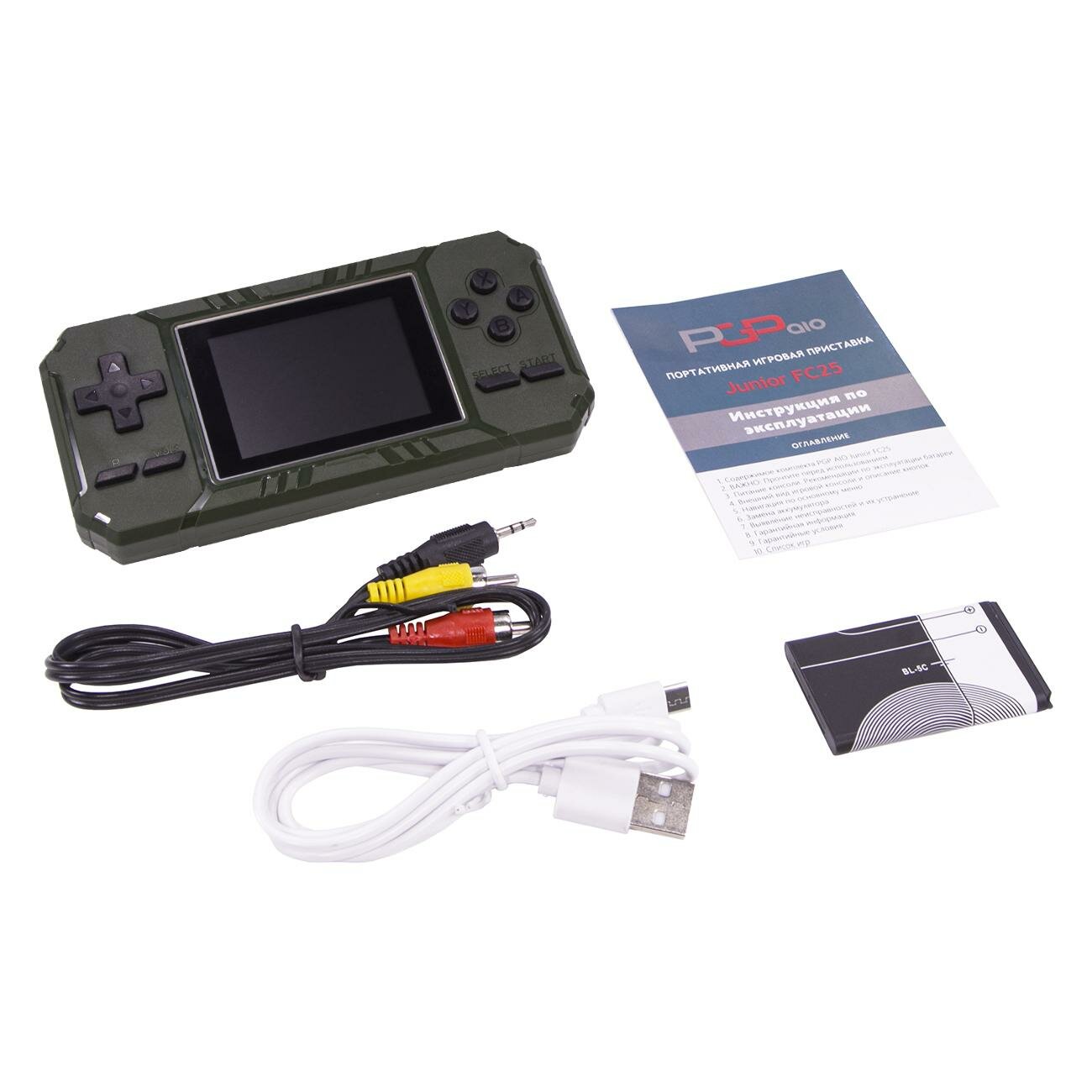 Игровая приставка PGP AIO Junior FC25b, экран 3", AV кабель, 500 игр, зелёная